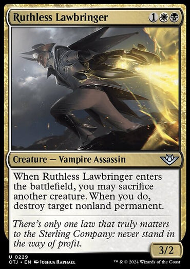 Ruthless Lawbringer [Outlaws of Thunder Junction]Set: Outlaws of Thunder Junction Type: Creature — Vampire Assassin Rarity: Uncommon ...
