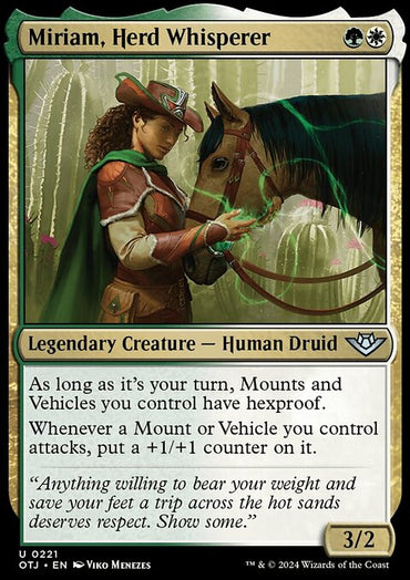 Miriam, Herd Whisperer [Outlaws of Thunder Junction]Set: Outlaws of Thunder Junction Type: Legendary Creature — Human Druid Rarity: Uncommon ...