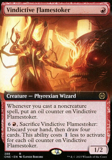 Vindictive Flamestoker (Extended Art) [Phyrexia: All Will Be One]Set: Phyrexia: All Will Be One Type: Creature — Phyrexian Wizard Rarity: Rare ...