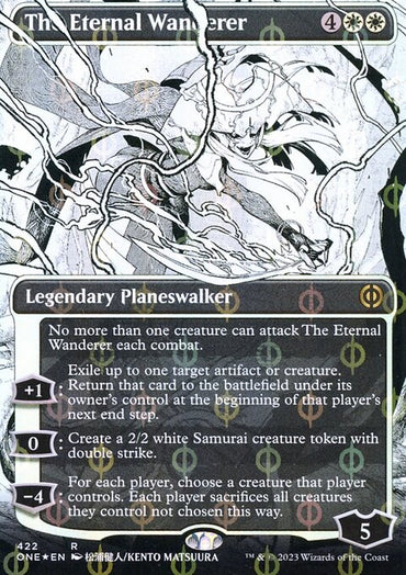 The Eternal Wanderer (Borderless Manga Step-and-Compleat Foil) [Phyrexia: All Will Be One]Set: Phyrexia: All Will Be One Type: Legendary Planeswalker Rarity: Mythic C...