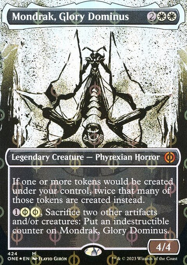 Mondrak, Glory Dominus (Borderless Ichor Step-and-Compleat Foil) [Phyrexia: All Will Be One]Set: Phyrexia: All Will Be One Type: Legendary Creature — Phyrexian Horror Rarity: Mythic ...