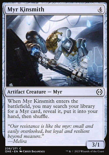 Myr Kinsmith [Phyrexia: All Will Be One]Set: Phyrexia: All Will Be One Type: Artifact Creature — Myr Rarity: Common ...