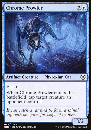 Chrome Prowler [Phyrexia: All Will Be One]Set: Phyrexia: All Will Be One Type: Artifact Creature — Phyrexian Cat Rarity: Common ...