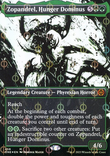 Zopandrel, Hunger Dominus (Borderless Ichor Step-and-Compleat Foil) [Phyrexia: All Will Be One]Set: Phyrexia: All Will Be One Type: Legendary Creature — Phyrexian Horror Rarity: Mythic ...