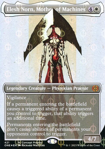 Elesh Norn, Mother of Machines (Borderless Concept Praetors Step-and-Compleat Foil) [Phyrexia: All Will Be One]Set: Phyrexia: All Will Be One Type: Legendary Creature — Phyrexian Praetor Rarity: Mythic ...
