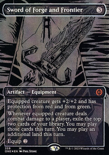 Sword of Forge and Frontier (Oil Slick Raised Foil) [Phyrexia: All Will Be One]Set: Phyrexia: All Will Be One Type: Artifact — Equipment Rarity: Mythic Cos...