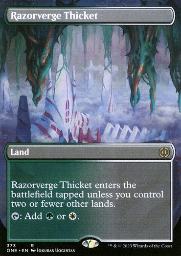 Razorverge Thicket (Borderless Alternate Art) [Phyrexia: All Will Be One]Set: Phyrexia: All Will Be One Type: Land Rarity: Rare Razorverge Thi...