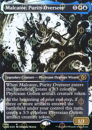Malcator, Purity Overseer (Borderless Ichor Step-and-Compleat Foil) [Phyrexia: All Will Be One]Set: Phyrexia: All Will Be One Type: Legendary Creature — Phyrexian Elephant Wizard Rarity: Rare ...