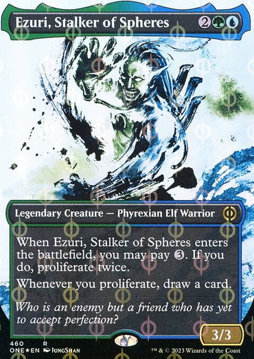 Ezuri, Stalker of Spheres (Borderless Ichor Step-and-Compleat Foil) [Phyrexia: All Will Be One]Set: Phyrexia: All Will Be One Type: Legendary Creature — Phyrexian Elf Warrior Rarity: Rare ...