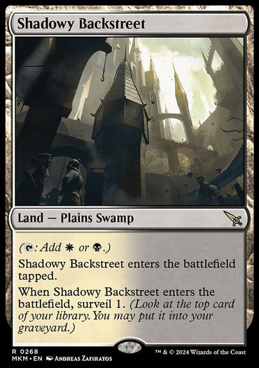 Shadowy Backstreet [Murders at Karlov Manor]Set: Murders at Karlov Manor Type: Land — Plains Swamp Rarity: Rare (...