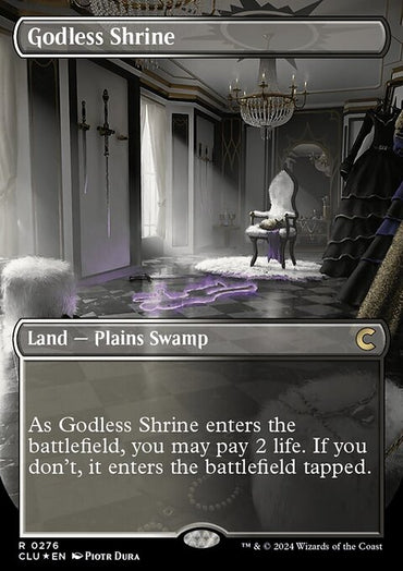 Godless Shrine (Borderless) [Ravnica: Clue Edition]Set: Ravnica: Clue Edition Type: Land — Plains Swamp Rarity: Rare ({T...