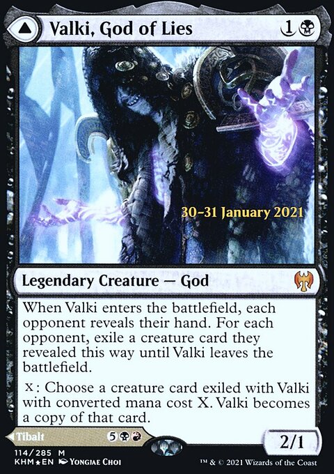 {X}: Choose a creature card exiled with Valki with converted mana cost X. Valki becomes a copy of that card.