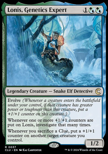 Lonis, Genetics Expert [Ravnica: Clue Edition]Set: Ravnica: Clue Edition Type: Legendary Creature — Snake Elf Detective Rarity: Rare ...