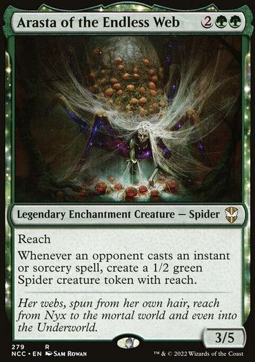 Arasta of the Endless Web [Streets of New Capenna Commander]Set: Streets of New Capenna Commander Type: Legendary Enchantment Creature — Spider Rarity: Rare ...