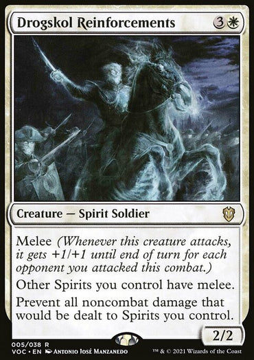 Drogskol Reinforcements [Innistrad: Crimson Vow Commander]Set: Innistrad: Crimson Vow Commander Type: Creature — Spirit Soldier Rarity: Rare ...