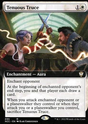 Tenuous Truce (Extended Art) [Streets of New Capenna Commander]Set: Streets of New Capenna Commander Type: Enchantment — Aura Rarity: Rare ...
