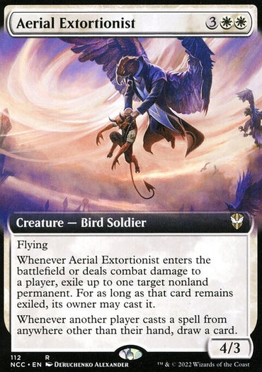 Aerial Extortionist (Extended Art) [Streets of New Capenna Commander]Set: Streets of New Capenna Commander Type: Creature — Bird Soldier Rarity: Rare ...