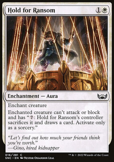 Hold for Ransom [Streets of New Capenna]Set: Streets of New Capenna Type: Enchantment — Aura Rarity: Common Cost: ...
