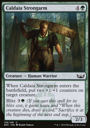 Caldaia Strongarm [Streets of New Capenna]Set: Streets of New Capenna Type: Creature — Human Warrior Rarity: Common Co...
