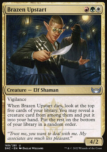 Brazen Upstart [Streets of New Capenna]Set: Streets of New Capenna Type: Creature — Elf Shaman Rarity: Uncommon Cos...