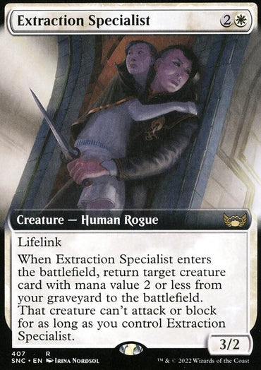 Extraction Specialist (Extended Art) [Streets of New Capenna]Set: Streets of New Capenna Type: Creature — Human Rogue Rarity: Rare Cost: ...