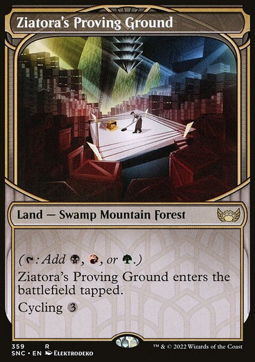 Ziatora's Proving Ground [Streets of New Capenna]Set: Streets of New Capenna Type: Land — Swamp Mountain Forest Rarity: Rare ...