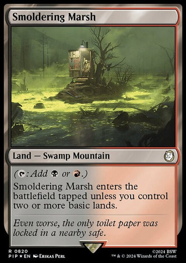 Smoldering Marsh (Surge Foil) [Fallout]Set: Fallout Type: Land — Swamp Mountain Rarity: Rare (T: Add B or R....