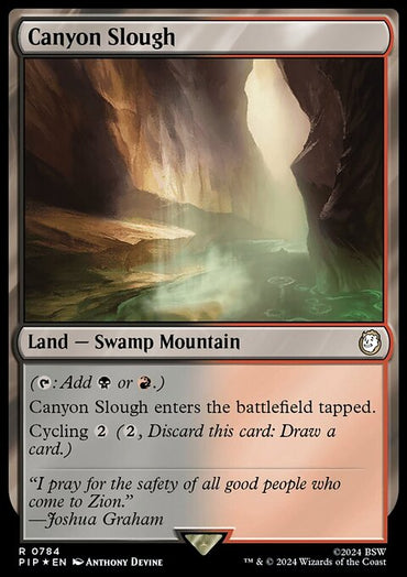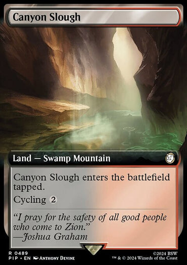 Canyon Slough (Extended Art) (Surge Foil) [Fallout]Set: Fallout Type: Land — Swamp Mountain Rarity: Rare Canyon Slough e...
