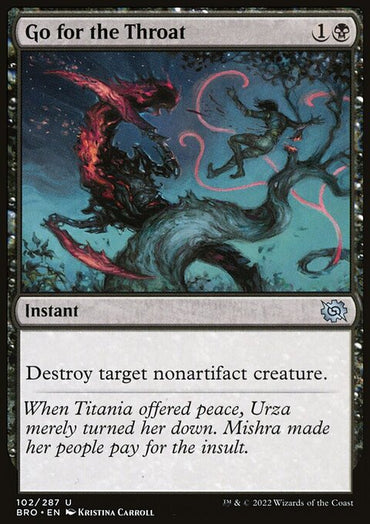 Go for the Throat [The Brothers' War]Set: The Brothers' War Type: Instant Rarity: Uncommon Cost: {1}{B}...