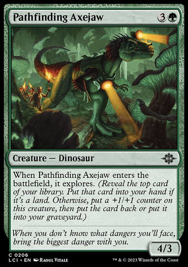 Pathfinding Axejaw [The Lost Caverns of Ixalan]Set: The Lost Caverns of Ixalan Type: Creature — Dinosaur Rarity: Common Cos...