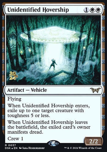 Unidentified Hovership (Promo Pack) [Duskmourn: House of Horror Promos]Set: Duskmourn: House of Horror Promos Type: Artifact — Vehicle Rarity: Rare ...