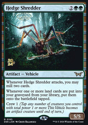 Hedge Shredder [Duskmourn: House of Horror Prerelease Promos]Set: Duskmourn: House of Horror Prerelease Promos Type: Artifact — Vehicle Rarity: Rare ...
