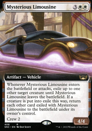 Mysterious Limousine (Extended Art) [Streets of New Capenna]Set: Streets of New Capenna Type: Artifact — Vehicle Rarity: Rare Cost: ...