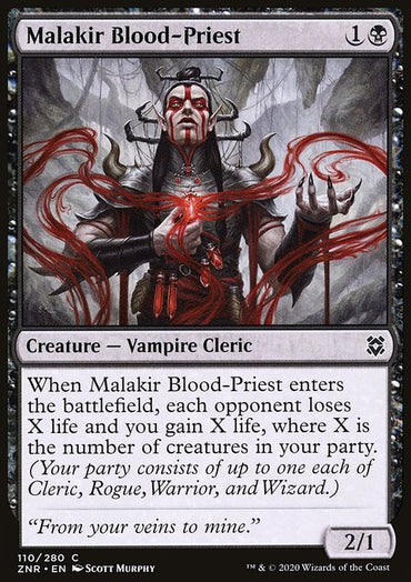 Malakir Blood-Priest [Zendikar Rising]Set: Zendikar Rising Type: Creature — Vampire Cleric Rarity: Common Cost: ...