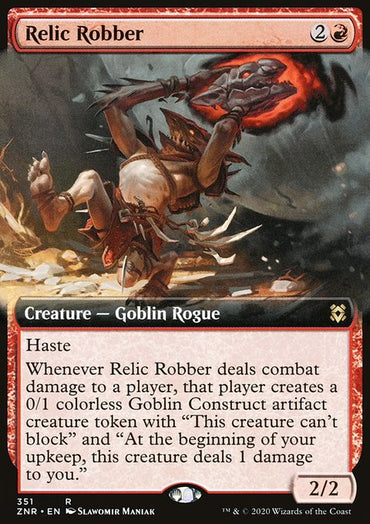 Relic Robber (Extended Art) [Zendikar Rising]Set: Zendikar Rising Type: Creature — Goblin Rogue Rarity: Rare Cost: ...