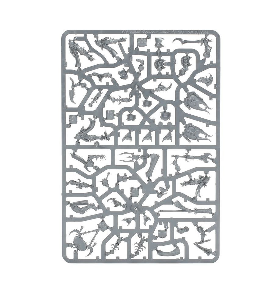 This 86-part plastic kit makes five Mymidesh Painbringers for use in Warhammer Age of Sigmar. It comes supplied with five 32mm Round Citadel bases. The kit can alternately be built as Symbaresh Twinsouls.