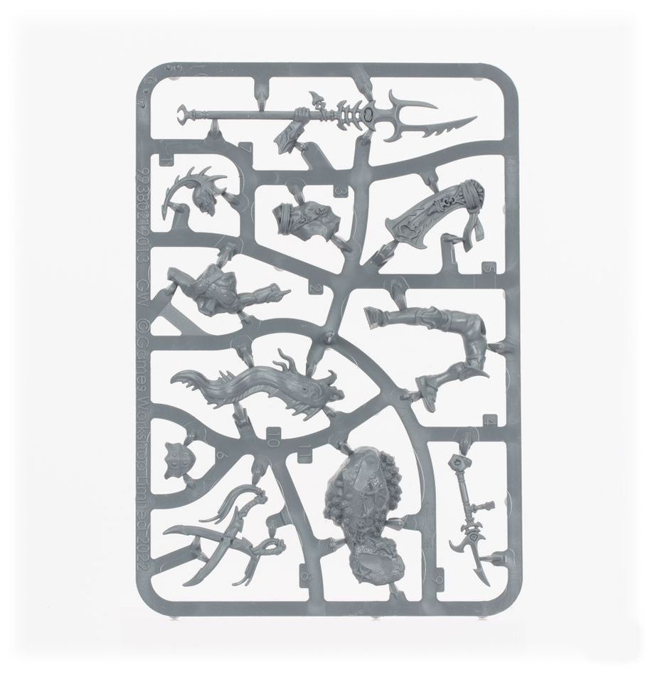 This multipart plastic kit builds one Akhelian Thrallmaster, a flexible support Hero for Idoneth Deepkin. Clad in the roguish, flowing outfit of a noble exile, this well-traveled noble is bristling with exotic weaponry and accompanied by a snapjaw eel companion. In battle, the Akhelian Thrallmaster is an excellent choice to lead a small force of Namarti Thralls and Reavers, or support them on the front lines in a larger army. The Thrallmaster can swap between fighting stances, each of which offers them – and nearby Namarti units – different abilities, allowing them to adapt to the shifting tides of war.