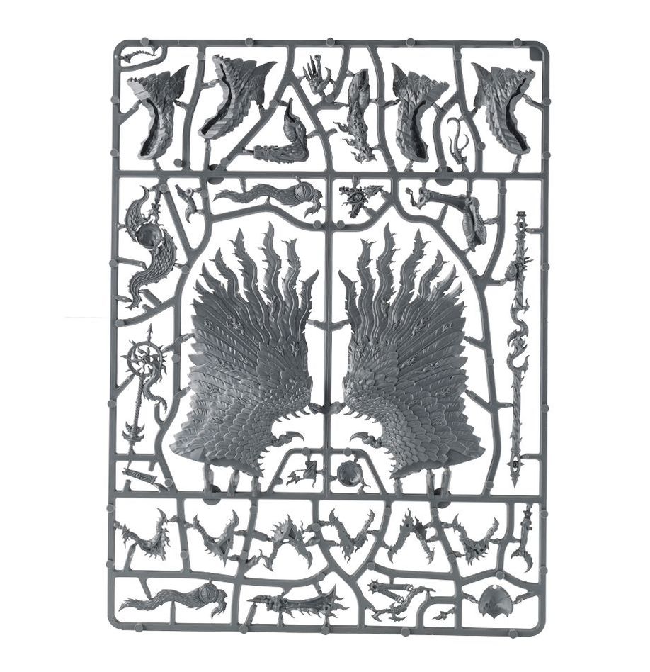 This multi-part plastic kit contains the components necessary to assemble a Lord of Change. A huge, imposing model, he makes an ideal centrepiece for any Tzeentchian army, covered as he is in the symbolism of Tzeentch that marks him out as a true master of magic. His enormous wings can be modelled in 2 different positions, and he features a choice of 3 different, sinister heads. He wields a staff of Tzeentch, which can be topped with either a symbol of Tzeentch or a flame blade; or can alternatively wield a baleful sword and Tzeentchian wand. He is accompanied by 2 Brimstone Horrors, which can be added to his base.