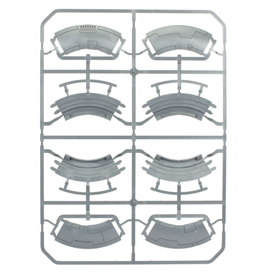 This multi-part plastic kit contains all the parts necessary to assemble one Tidewall Shieldline, an awesome piece of mobile scenery, completely modular and compatible with the Tidewall Droneport. Includes an extra linking plate, allowing you to join multiple Tidewall kits and full rules for use in games.