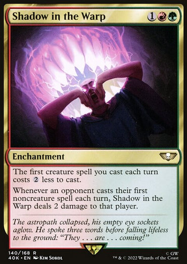 Shadow in the Warp (Surge Foil) [Warhammer 40,000]Set: Warhammer 40,000 Type: Enchantment Rarity: Rare Cost: {1}{R}{...