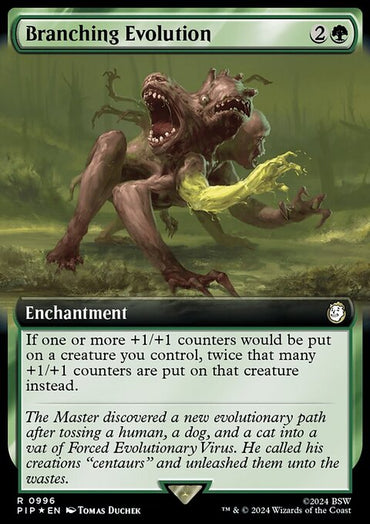 Branching Evolution (Extended Art) (Surge Foil) [Fallout]Set: Fallout Type: Enchantment Rarity: Rare Cost: {2}{G} ...