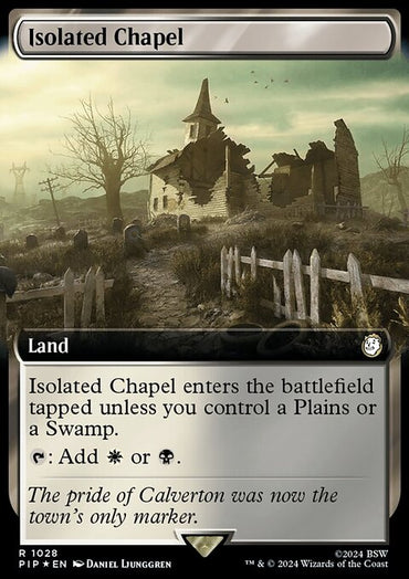 Isolated Chapel (Extended Art) (Surge Foil) [Fallout]Set: Fallout Type: Land Rarity: Rare Isolated Chapel enters the battl...