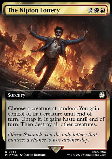 The Nipton Lottery (Extended Art) (Surge Foil) [Fallout]Set: Fallout Type: Sorcery Rarity: Rare Cost: {2}{B}{R} ...