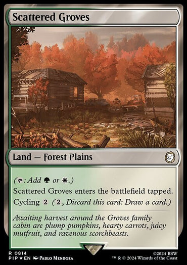 Scattered Groves (Surge Foil) [Fallout]Set: Fallout Type: Land — Forest Plains Rarity: Rare (T: Add G or W.)...