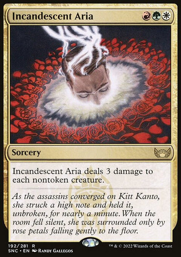 Incandescent Aria [Streets of New Capenna]Set: Streets of New Capenna Type: Sorcery Rarity: Rare Cost: {R}{G...