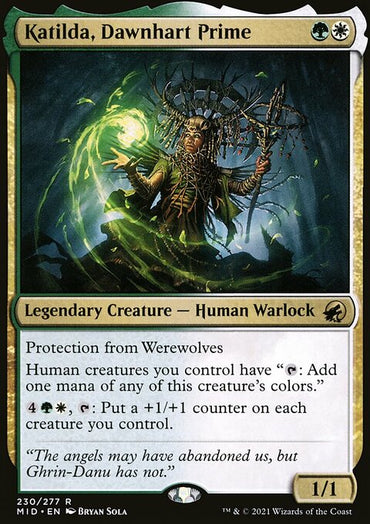 Katilda, Dawnhart Prime [Innistrad: Midnight Hunt]Set: Innistrad: Midnight Hunt Type: Legendary Creature — Human Warlock Rarity: Rare ...