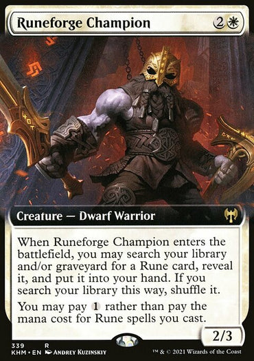 Runeforge Champion (Extended Art) [Kaldheim]Set: Kaldheim Type: Creature — Dwarf Warrior Rarity: Rare Cost: {2...