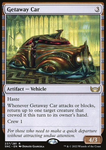 Getaway Car [Streets of New Capenna]Set: Streets of New Capenna Type: Artifact — Vehicle Rarity: Rare Cost: ...