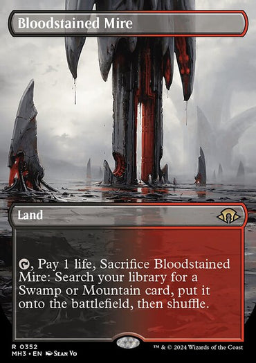 Bloodstained Mire (Borderless) [Modern Horizons 3]Set: Modern Horizons 3 Type: Land Rarity: Rare {T}, Pay 1 life, Sacri...