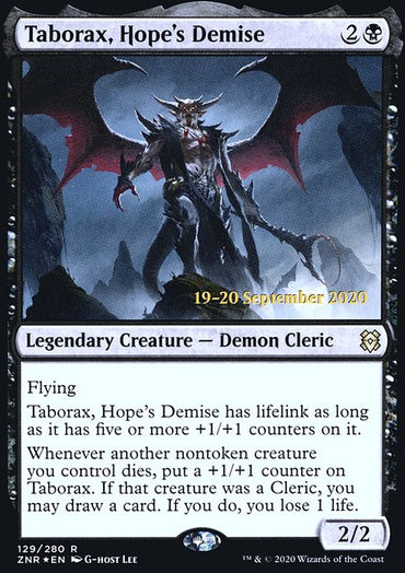 Taborax, Hope's Demise [Zendikar Rising Prerelease Promos]Set: Zendikar Rising Prerelease Promos Type: Legendary Creature — Demon Cleric Rarity: Rare ...